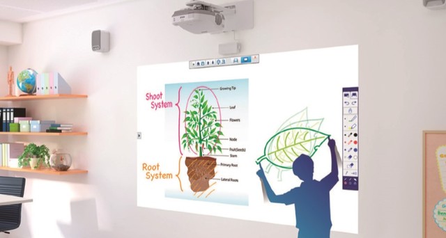 爱普生新推出的CB-695Wi教育超短焦互动投影机,采用3LCD技术,3500lm高亮度,14000:1高对比度,超短焦投影可以有效阻隔环境光对投影画面的影响,在明亮的课堂环境下也能呈现出清晰、明亮、自然的彩色画面。